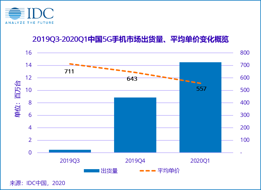 在IDC發(fā)布的手機季度跟蹤報告中顯示,2020年第一季度,國內(nèi)5G手機出貨量約1450萬臺,占整體市場21.8%,環(huán)比上季度增長64%。