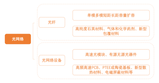 5G通訊各部分元器件準備就緒后,需要通過承載網進行勾連和傳輸,那么5G新基建中的傳輸光網絡建設會帶來光傳輸設備、光模塊和光纖建設數量的成倍增長。